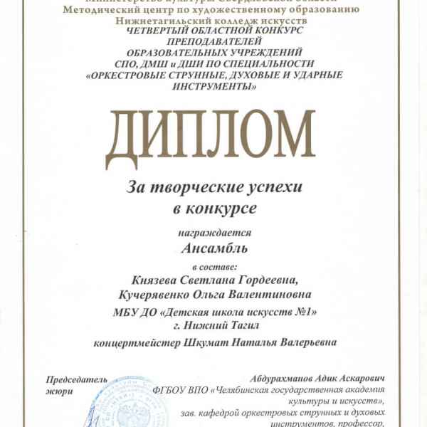 Заведующая оркестрового отделения, преподаватель оркестрового отделения.